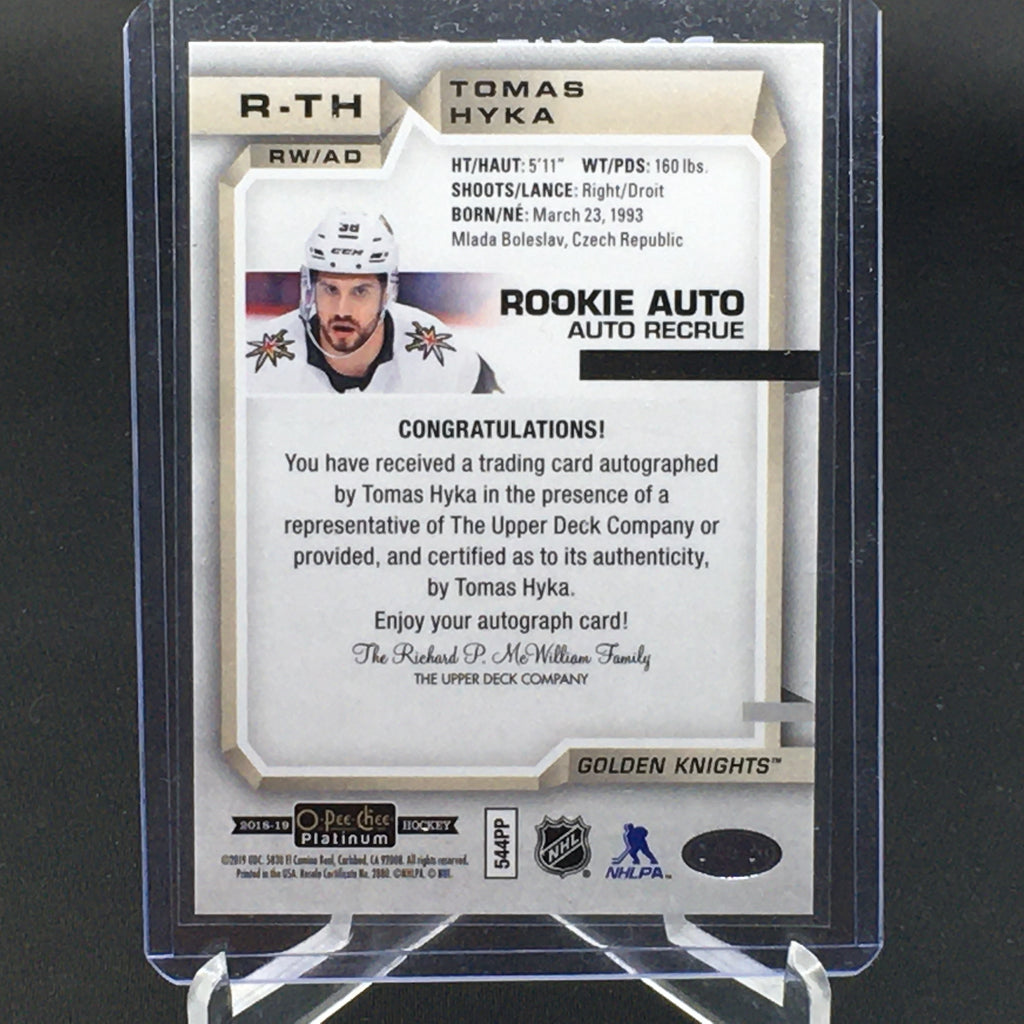 2018 UPPER DECK O-PEE-CHEE PLATINUM - ROOKIE AUTO - T. HYKA - #R-TH - AUTOGRAPH