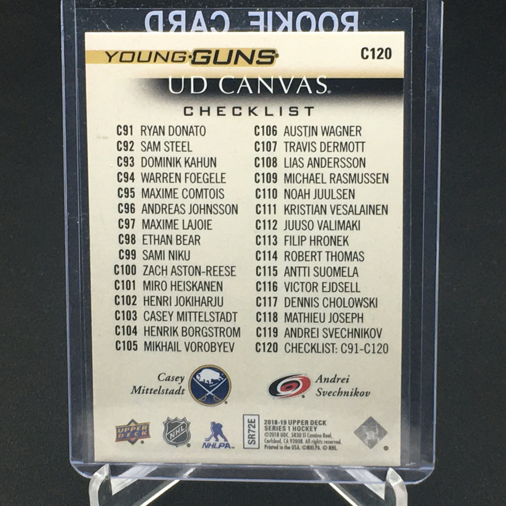 2018 UPPER DECK SERIES ONE - UD CANVAS - YOUNG GUNS CHECKLIST - C. MITTELSTADT/ A. SVECHNIKOV - #C120 - RC