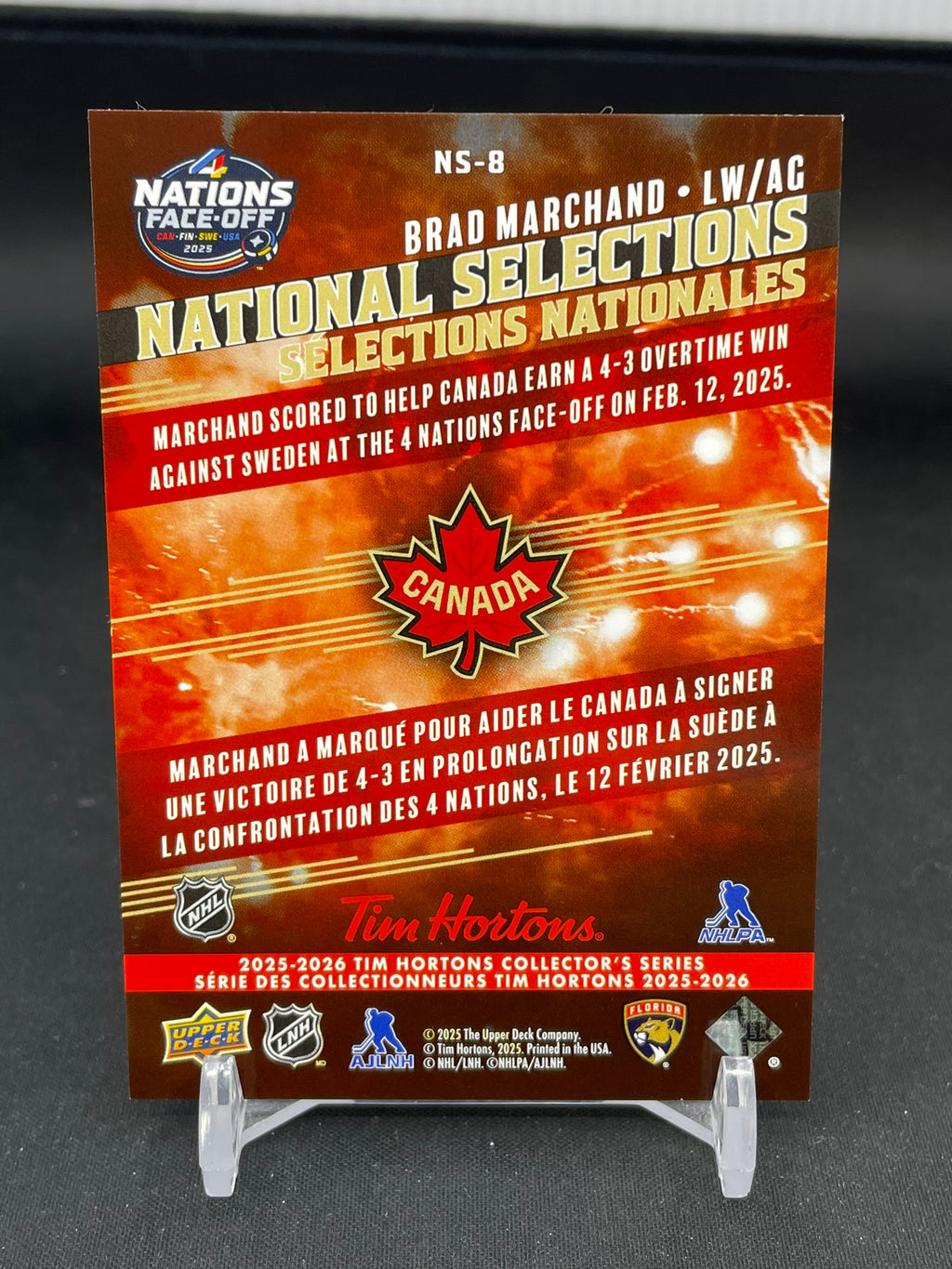 2025 UPPER DECK TIM HORTONS - NATIONAL SELECTIONS - B. MARCHAND - #NS-8