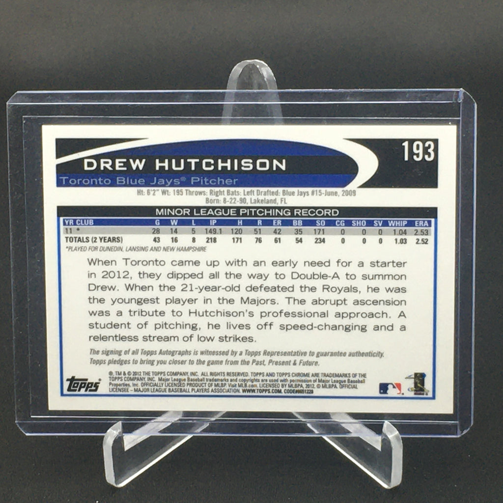 2012 TOPPS CHROME - D. HUTCHISON - #193 - AUTOGRAPH - RC