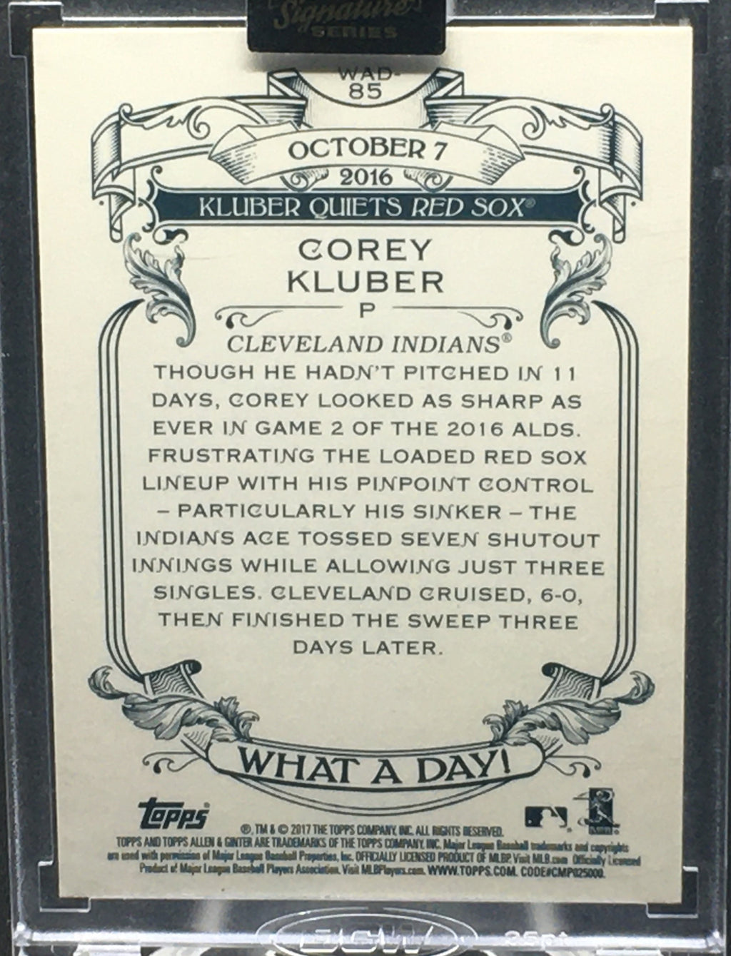 2021 TOPPS ARCHIVES SIGNATURE SERIES - 2017 TOPPS ALLEN AND GINTER - C. KLUBER - #WAD-85 - #'D/1 - AUTOGRAPH