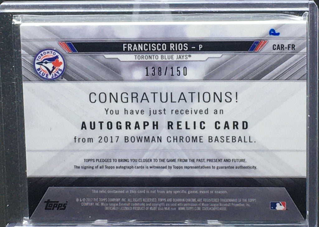2017 TOPPS BOWMAN CHROME - F. RIOS - #CAR-FR - #'D/150 - AUTOGRAPH - JERSEY