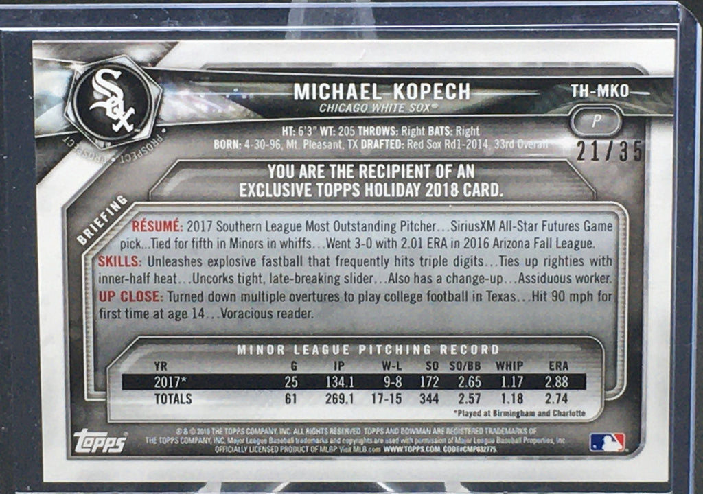 2018 TOPPS BOWMAN - HOLIDAY - M. KOPECH - #TH-MKO - #'D/35