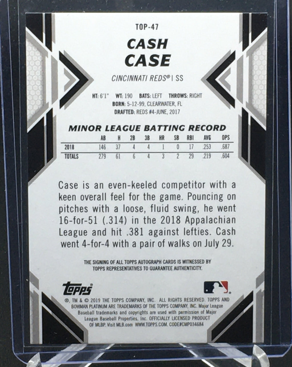 2019 TOPPS BOWMAN PLATINUM - C. CASE - #TOP-47 - AUTOGRAPH