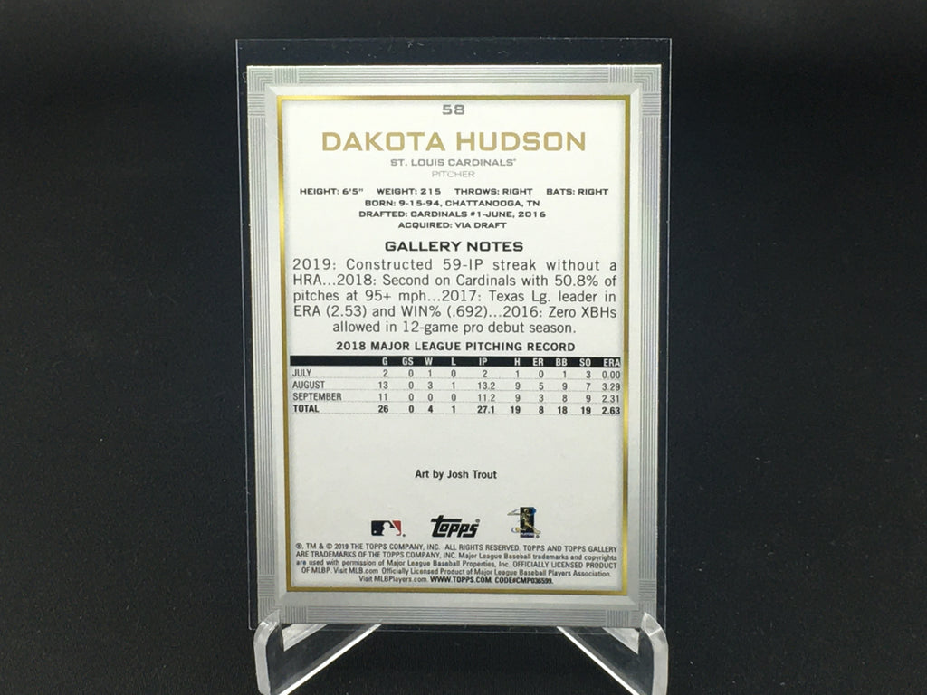 2019 TOPPS GALLERY - D. HUDSON - #58 - RC