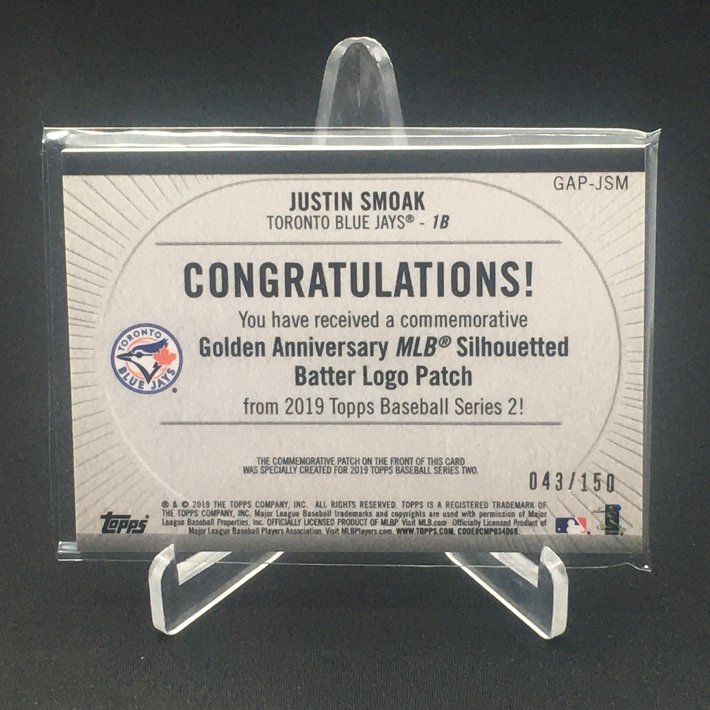 2019 TOPPS SERIES TWO - COMMEMORATIVE GOLDEN ANNIVERSARY - J. SMOAK - #GAP-JSM - #'D/150 - SILHOUETTED BATTER LOGO PATCH - RC