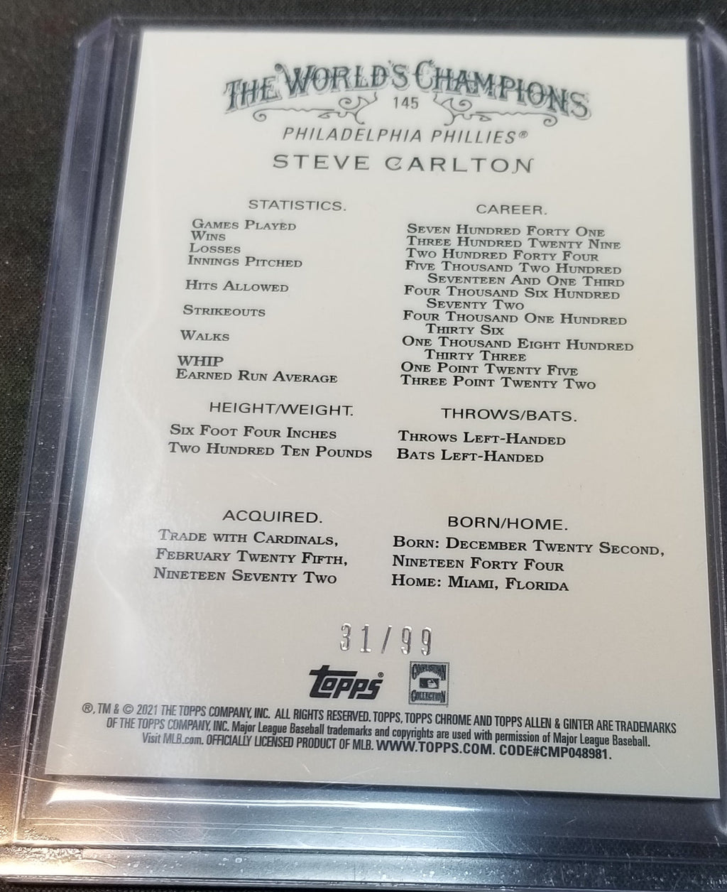 2021 TOPPS ALLEN & GINTER CHROME - GREEN REFRACTOR - S. CARLTON - #145 - #'D/99