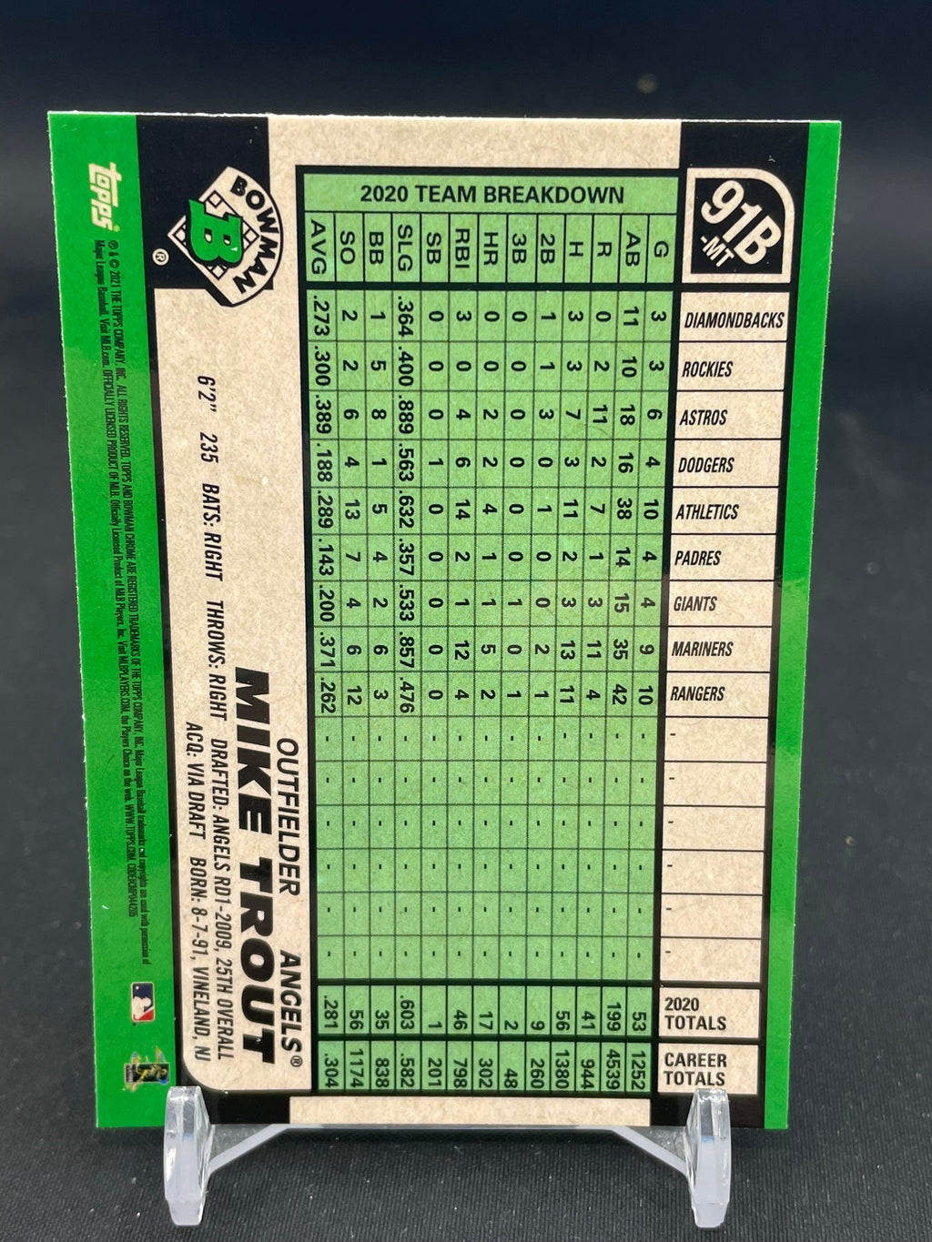 2021 TOPPS BOWMAN CHROME - M. TROUT - #91B-MT