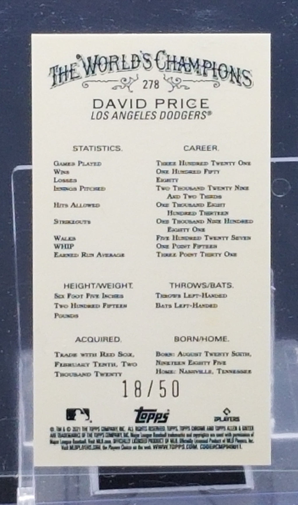 2021 TOPPS CHROME ALLEN & GINTER - GOLD - MINI - D. PRICE - #278 - #'D/50