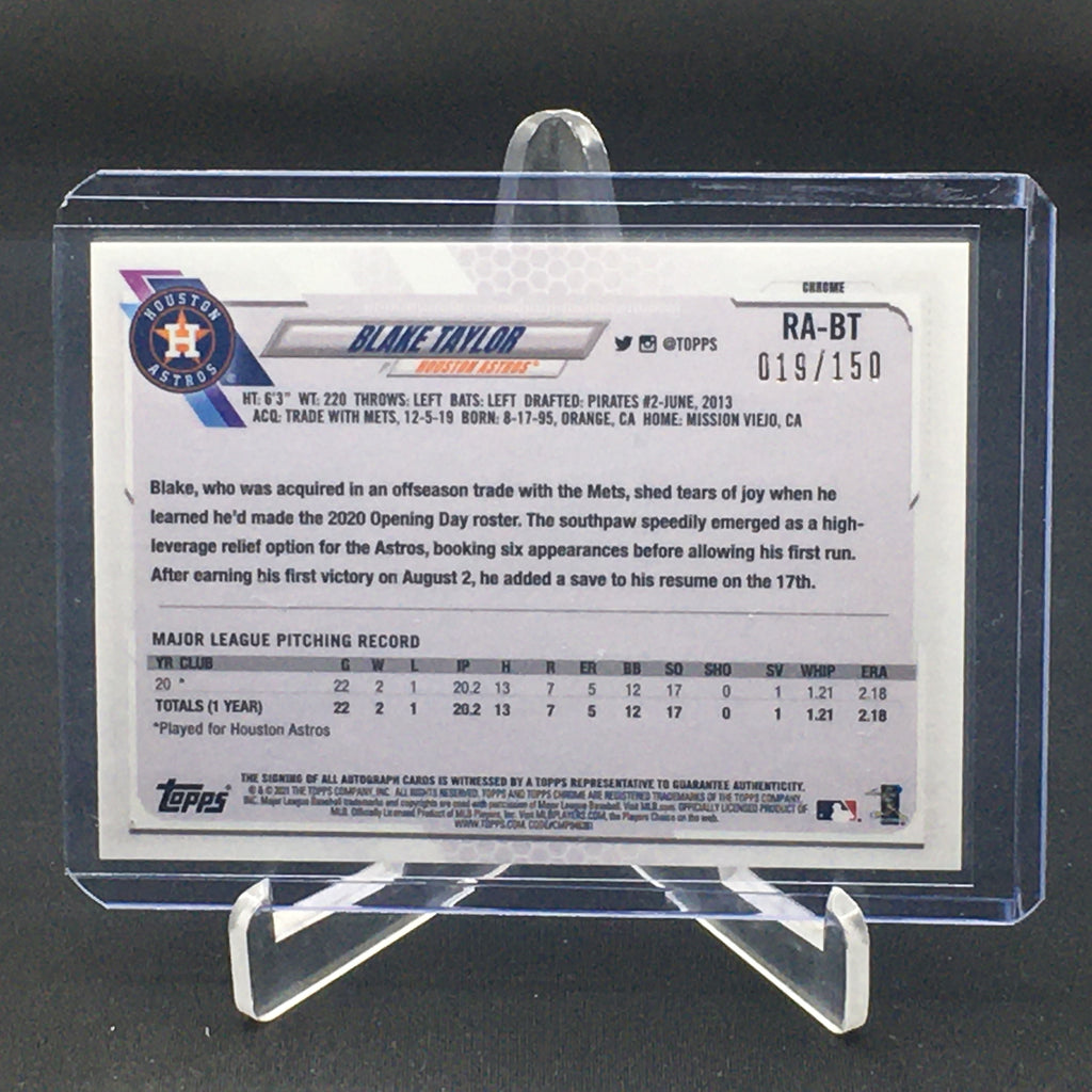 2021 TOPPS CHROME - BLUE WAVE REFRACTOR - B. TAYLOR - #RA-BT - #'D/150 - AUTOGRAPH - RC