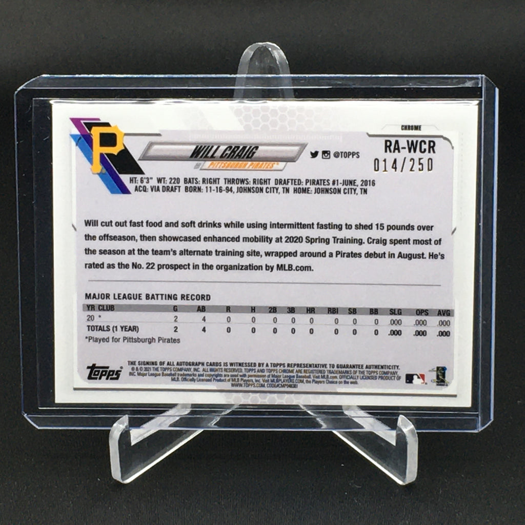 2021 TOPPS CHROME - PURPLE REFRACTOR - W. CRAIG - #RA-WCR - #'D/250 - AUTOGRAPH - RC