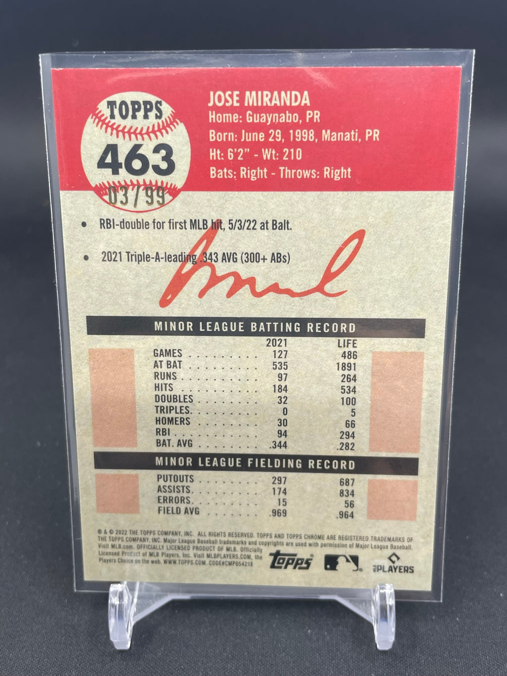 2022 TOPPS CHROME PLATINUM ANNIVERSARY - GREEN WAVE REFRACTOR - J. MIRANDA - #463 - #'D/99 - RC