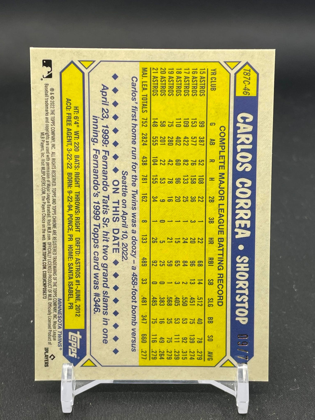 2022 TOPPS CHROME SILVER PACK - PURPLE MOJO REFRACTOR - C. CORREA - #T87C-46 - #'D/75