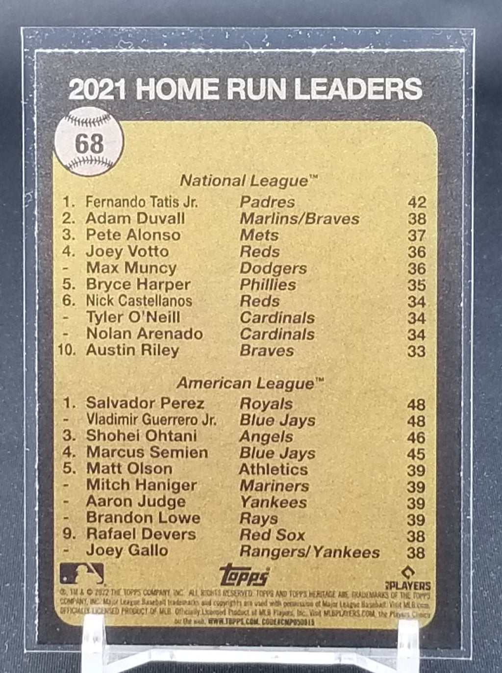 2022 TOPPS HERITAGE - 2021 HOME RUN LEADERS - V. GUERRERO JR. / S. PEREZ / F. TATIS JR. - #68