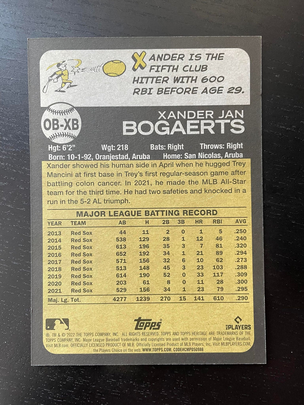 2022 TOPPS HERITAGE - JUMBO BOX TOPPER - X. BOGAERTS - #OB-XB