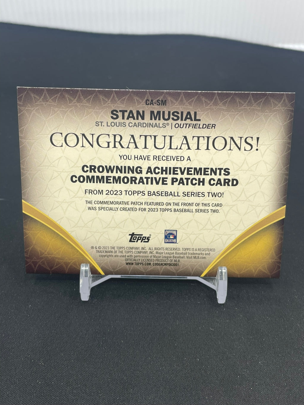 2023 TOPPS SERIES TWO - CROWNING ACHIEVEMENTS COMMEMORATIVE PATCH - S. MUSIAL - #CA-SM - #'D/299 - RELIC