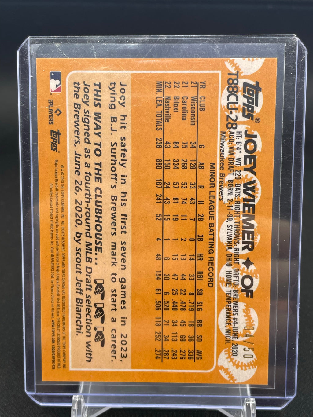 2023 TOPPS SILVER PACK - GOLD MOJO - J. WIEMER - #T88CU-28 - #'D/50 - RC