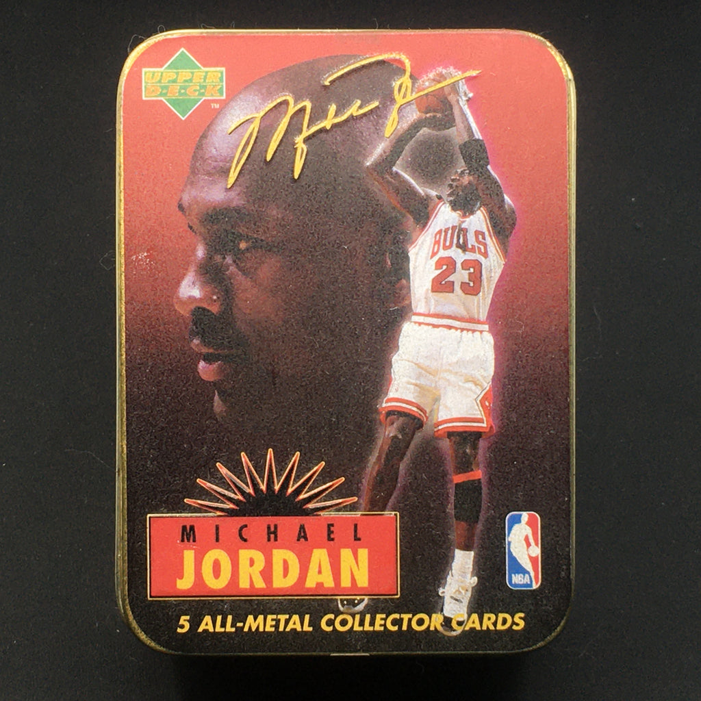 1996 UPPER DECK - 5 ALL METAL COLLECTOR CARDS - M. JORDAN - COLLECTORS TIN