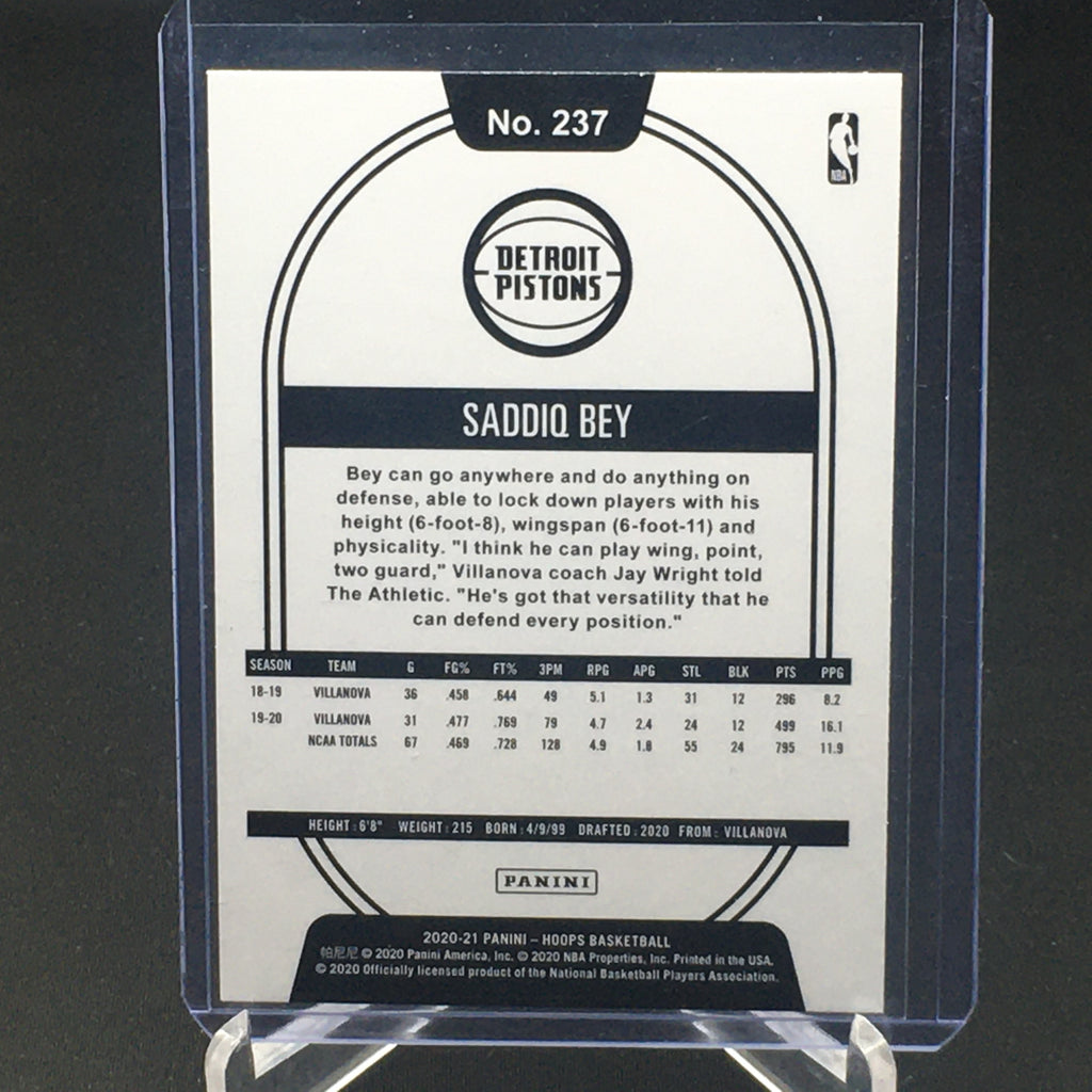 2020 PANINI HOOPS - S. BEY - #237 - RC