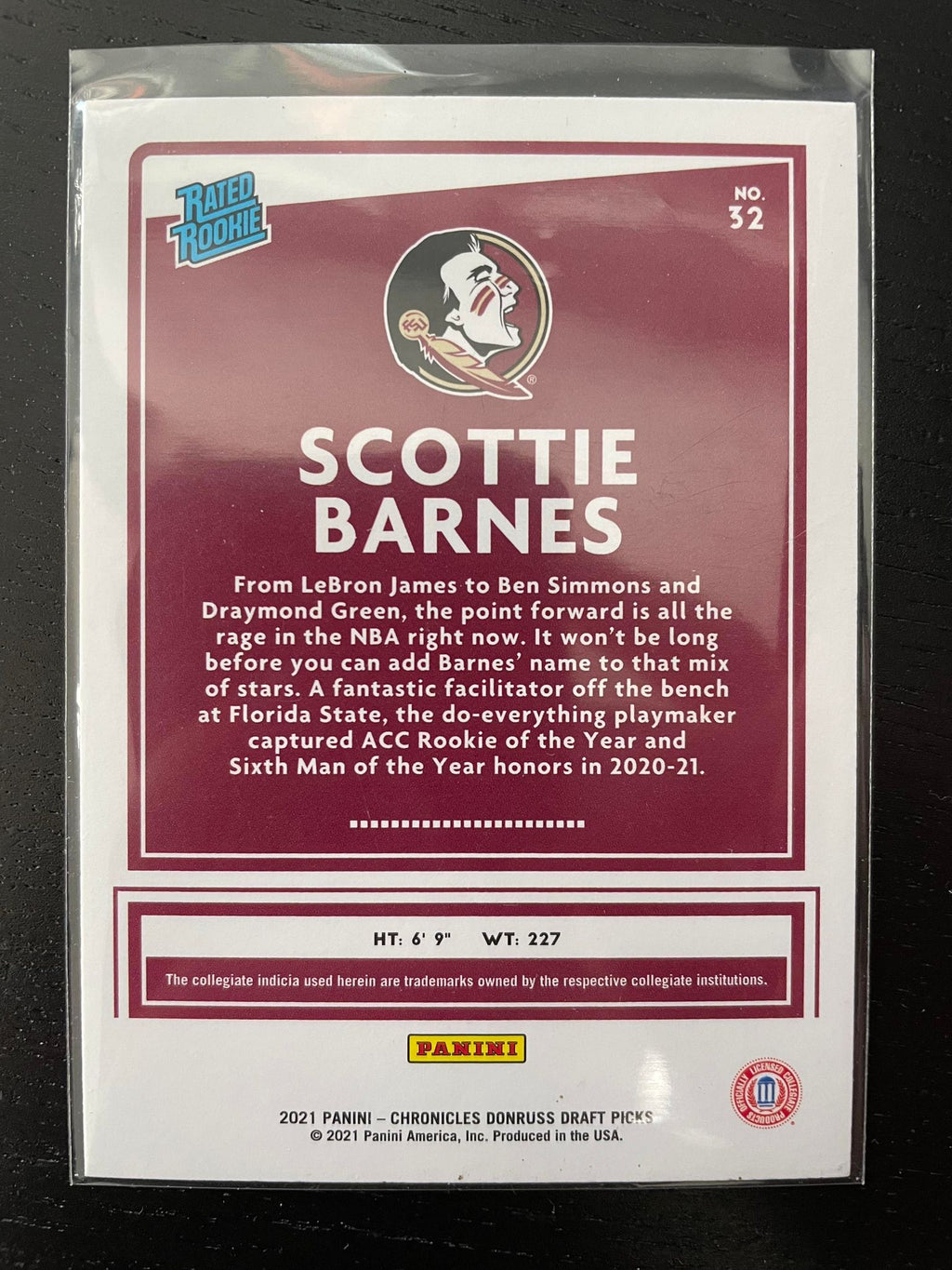 2021 PANINI CHRONICLES DRAFT PICKS - DONRUSS - GREEN - RATED ROOKIE - S. BARNES - #32 - RC