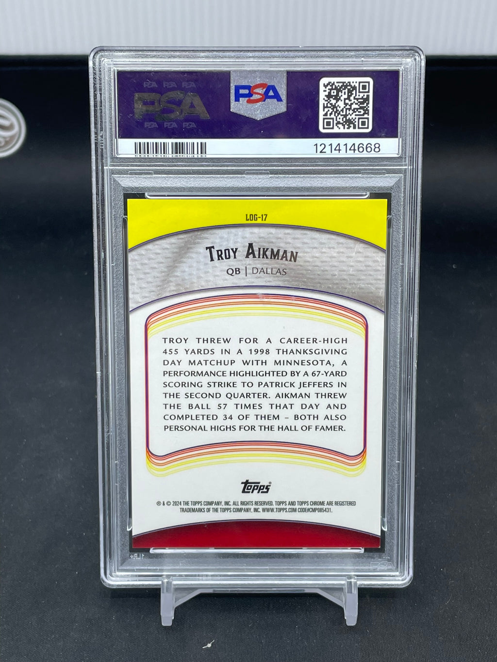 2024 TOPPS CHROME - RED REFRACTOR - LEGENDS OF THE GRIDIRON - T. AIKMAN - #LOG17 - #'D/5 - PSA 9