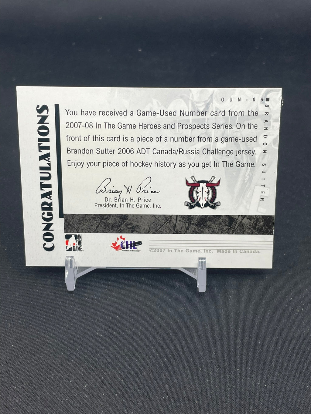 2007 IN THE GAME HEROES AND PROSPECTS - GAME-USED - B. SUTTER - #GUN-06 - JERSEY NUMBER RELIC