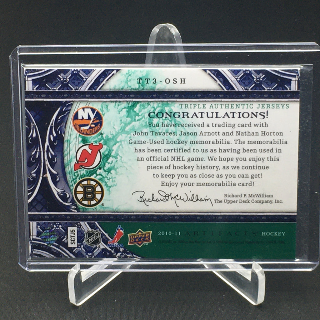 2010 UPPER DECK ARTIFACTS - TUNDRA TRIOS - J. TAVARES/ J. ARNOTT/ N. HORTON - #TT3-OSH - #'D/15 - TRIPLE JERSEY RELIC