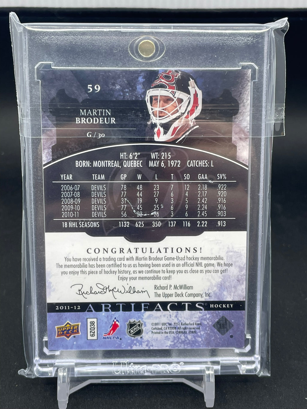 2011 UPPER DECK ARTIFACTS - EMERALD - M. BRODEUR - #59 - #'D/35 - DUAL RELIC