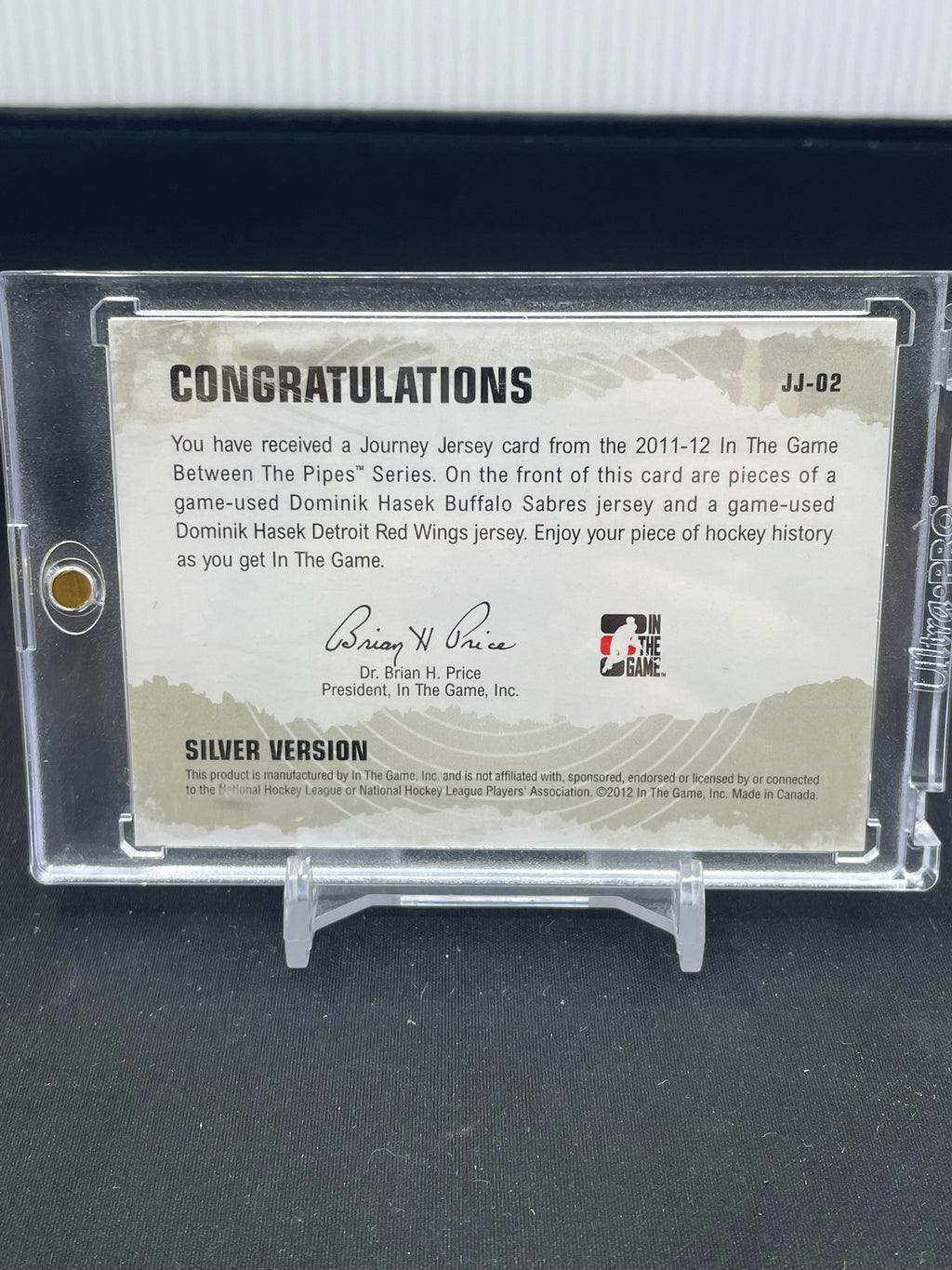 2011 IN THE GAME BETWEEN THE PIPES - SILVER VERSION - JOURNEY JERSEY - D. HASEK - #JJ02 - DUAL RELIC