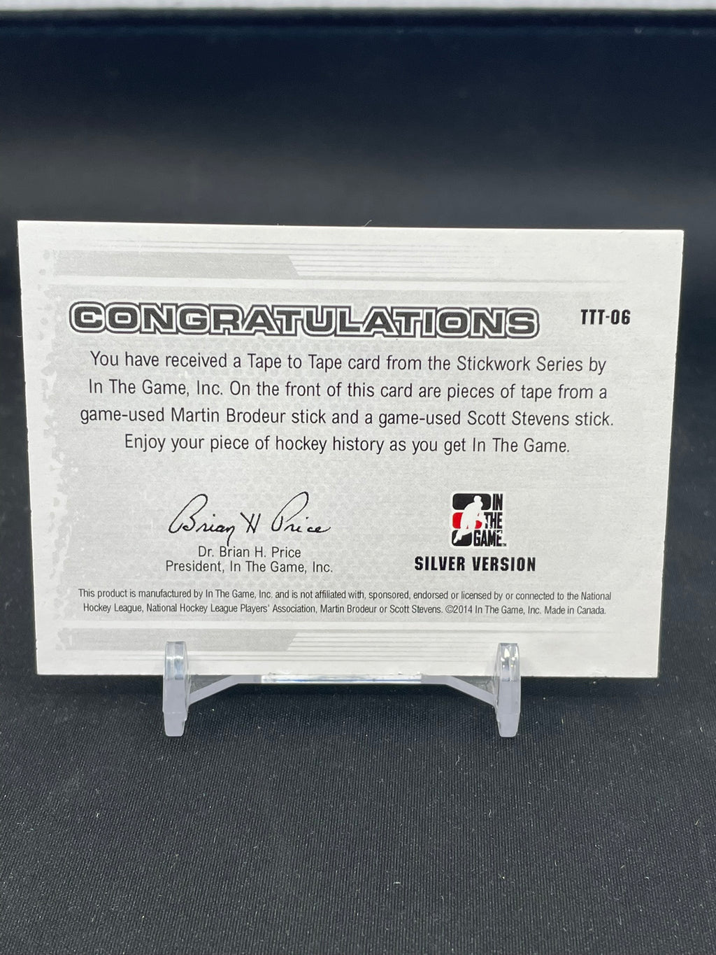 2014 IN THE GAME - SILVER VERSION - TAPE TO TAPE - M. BRODEUR / S. STEVENS - #TTT-06 - DOUBLE RELIC