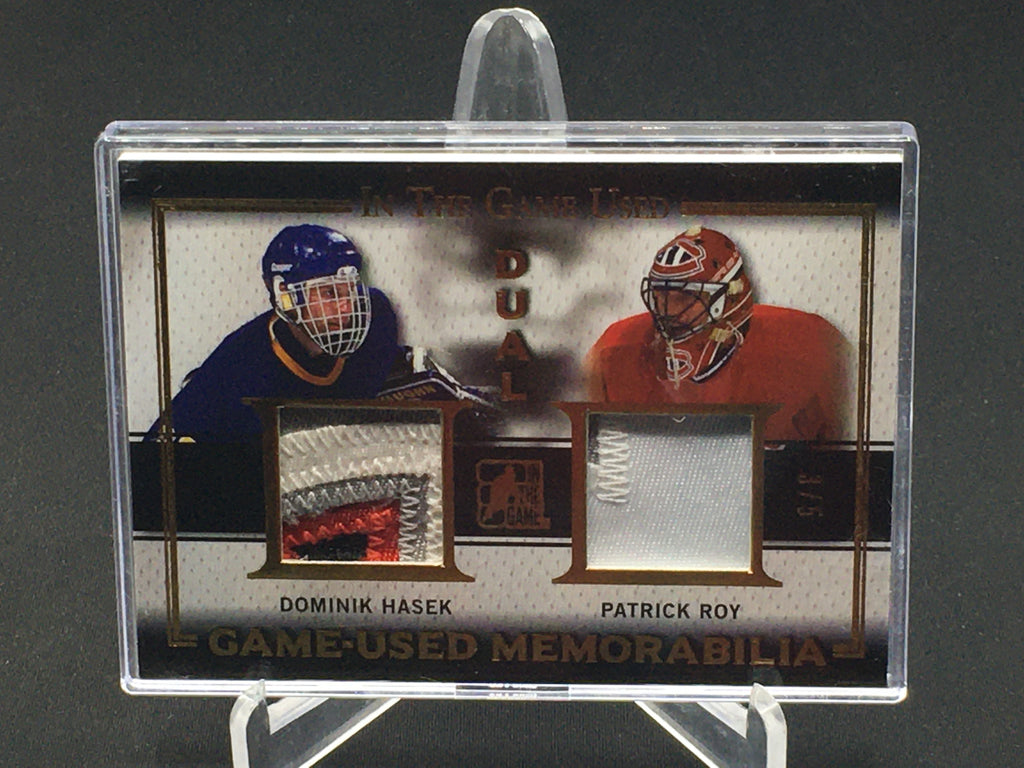 2016 LEAF IN THE GAME USED - DUAL GAME-USED MEMORABILIA - D. HASEK/ P. ROY - #GDP-01 - #'D/5 - DUAL RELIC