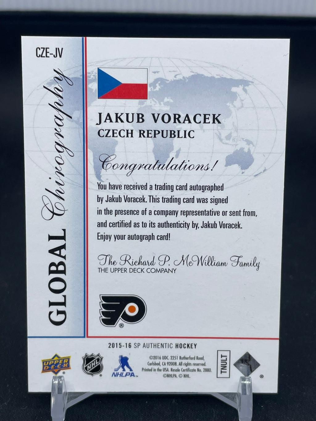 2015 UPPER DECK SP AUTHENTIC - GLOBAL CHIROGRAPHY - J. VORACEK - #CZE-JV - AUTOGRAPH