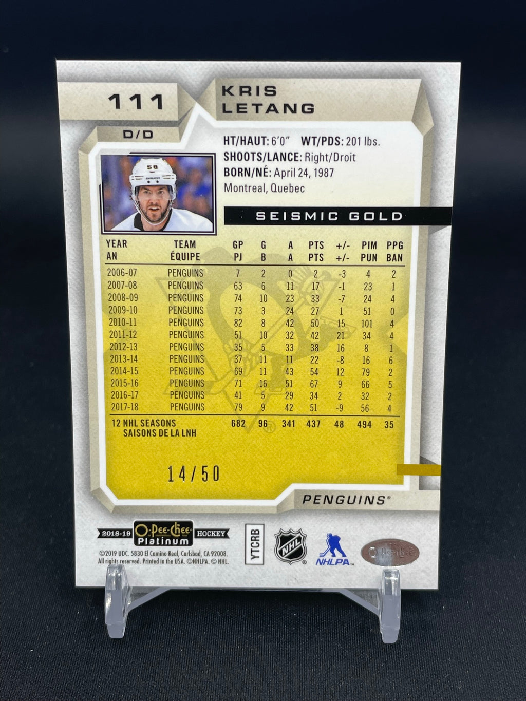 2018 UPPER DECK O-PEE-CHEE PLATINUM - SEISMIC GOLD - K. LETANG - #111 - #'D/50
