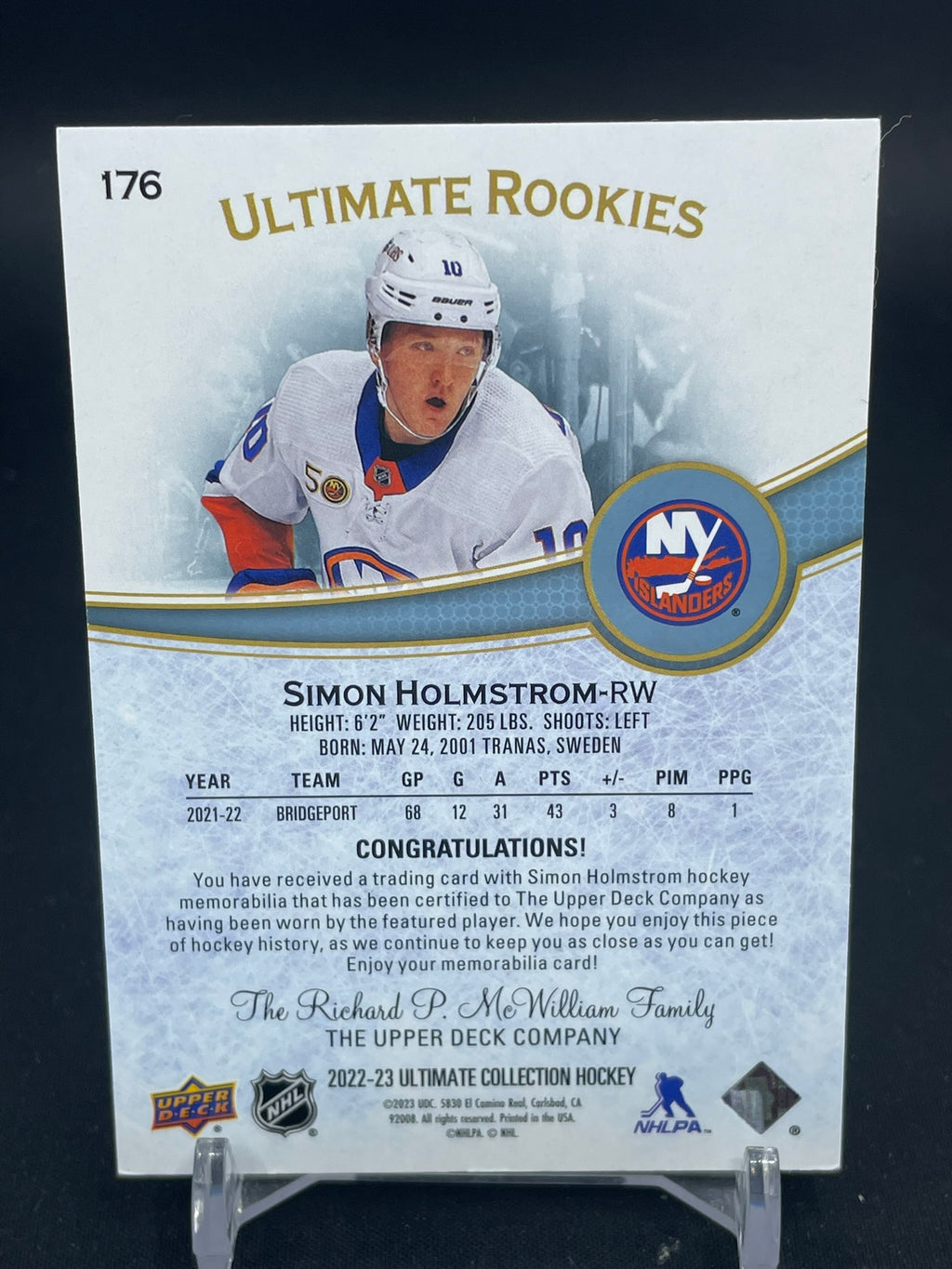 2022 UPPER DECK ULTIMATE - ULTIMATE ROOKIES - S. HOLMSTROM - #176 - #'D/799 - RELIC - RC