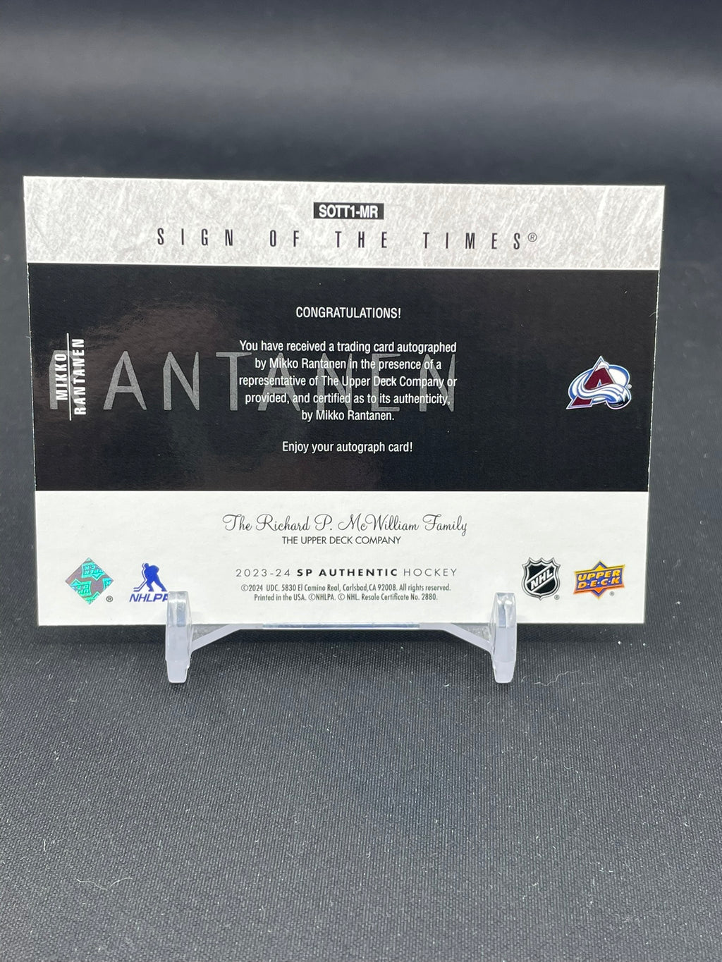 2023 UPPER DECK SP AUTHENTIC - SIGN OF THE TIMES - M. RANTANEN - #SOTT1-MR - AUTOGRAPH