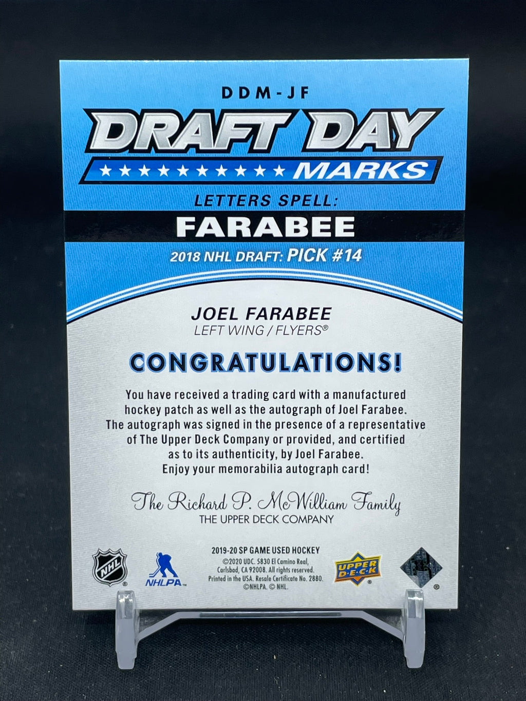 2019 UPPER DECK SP GAME USED - DRAFT DAY MARKS - J. FARABEE - #DDM-JF - #'D/35 - RELIC - AUTOGRAPH