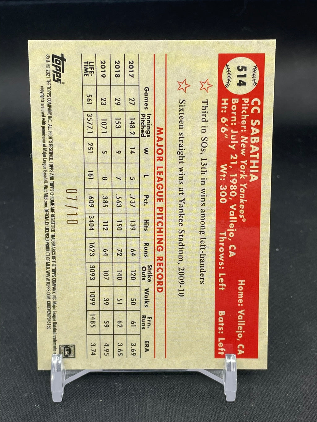 2021 TOPPS PLATINUM ANNIVERSARY - BLACK/GOLD 70TH REFRACTOR - C. SABATHIA - #514 - #'D/10