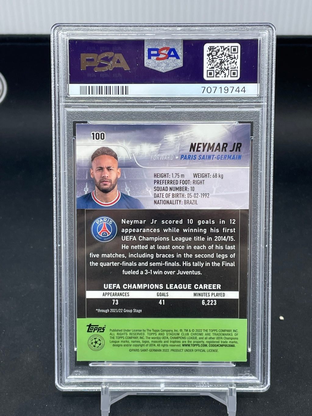 2021 TOPPS STADIUM CLUB CHROME - PINK/RED ELECTRIC CHARGE REFRACTOR - NEYMAR JR. - #100 - PSA 10