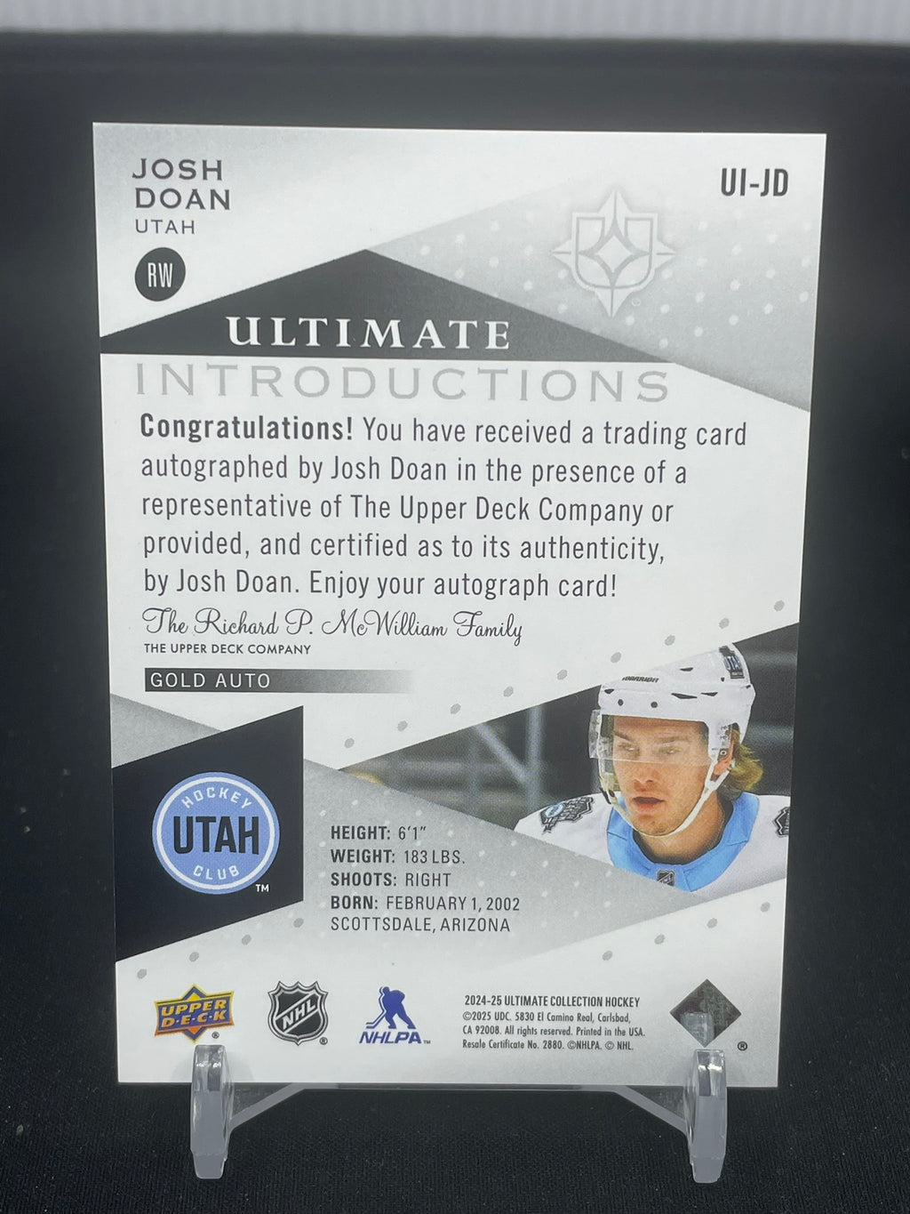 2024 UPPER DECK ULTIMATE - ULTIMATE INTRODUCTIONS - GOLD AUTO - J. DOAN - #UI-JG - #'D/49 - AUTOGRAPH - RC