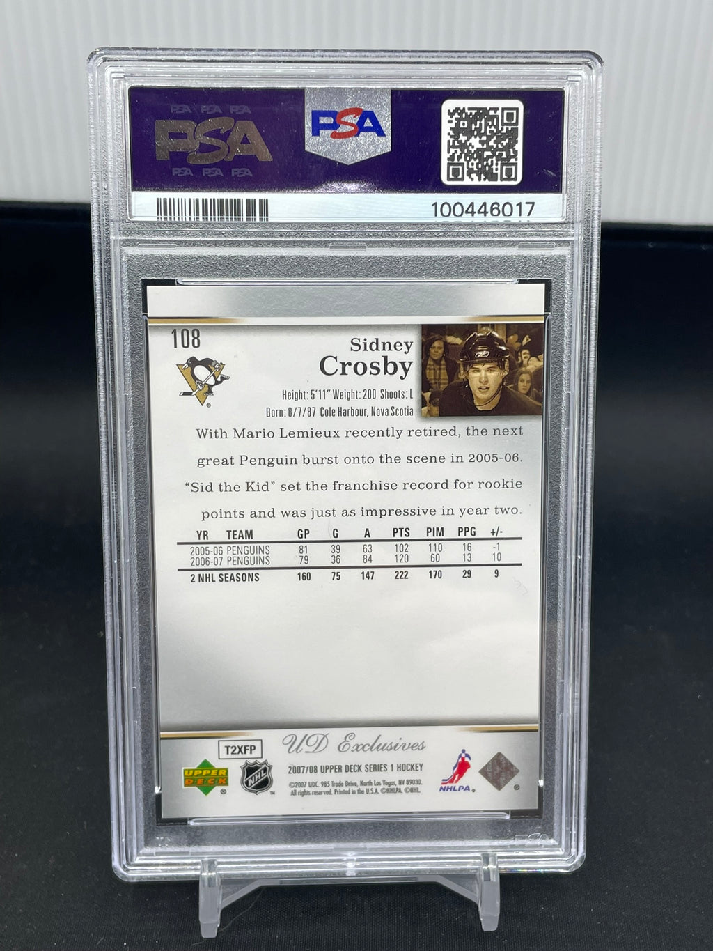 2007 UPPER DECK SERIES ONE - UD EXCLUSIVES - S. CROSBY - #108 - #'D/100 - PSA 8