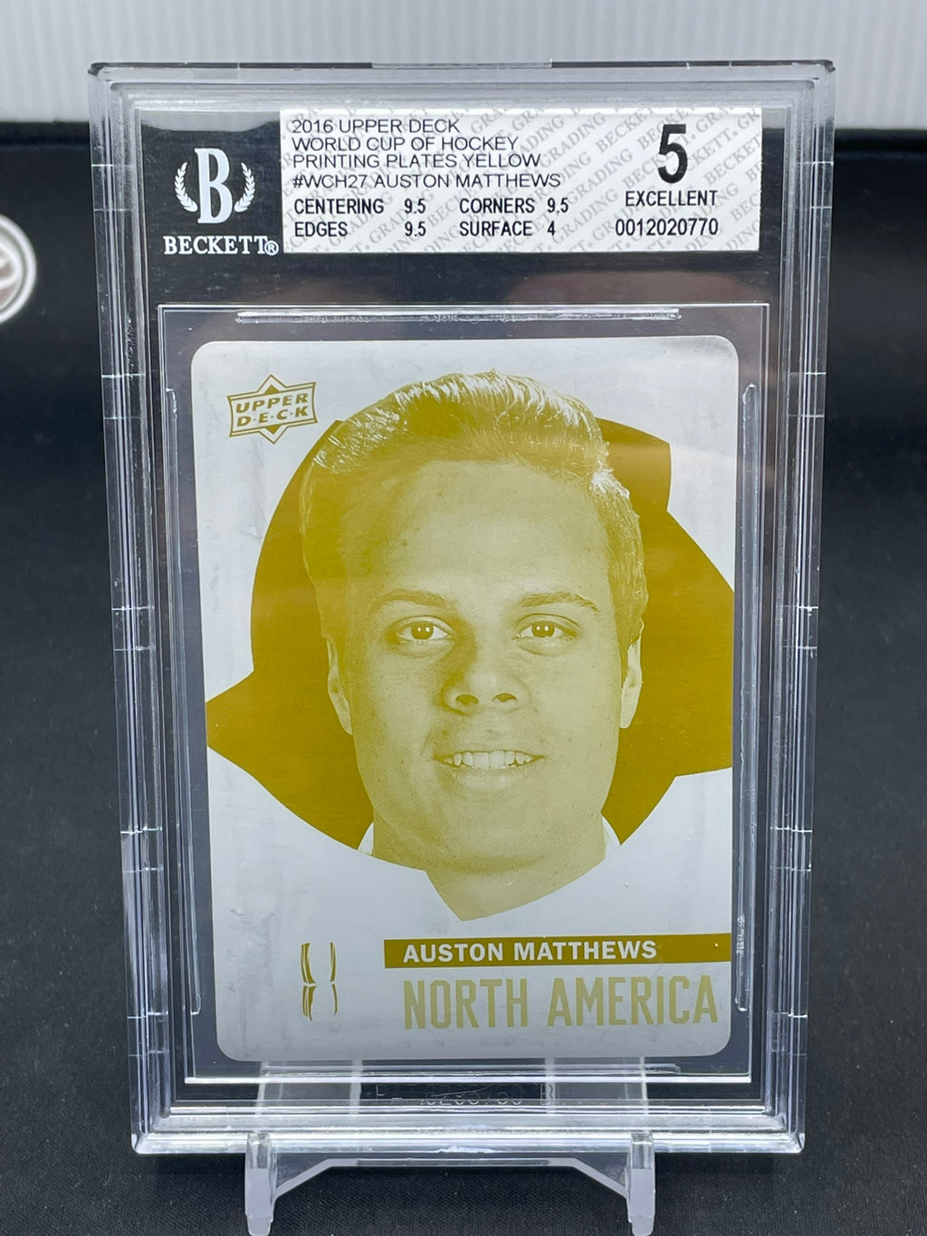 2016 UPPER DECK WORLD CUP OF HOCKEY - YELLOW PRINTING PLATE - A. MATTHEWS - #WCH27 - ONE OF ONE - BGS 5 - RC