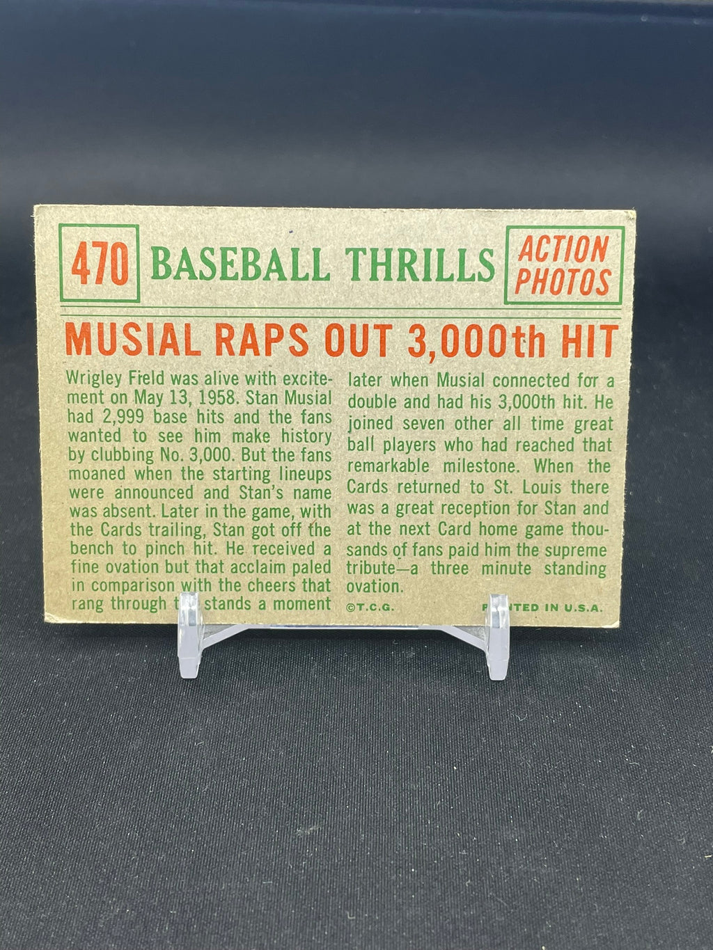 1959 TOPPS BASEBALL THRILLS - ACTION PHOTOS - S. MUSIAL - #470