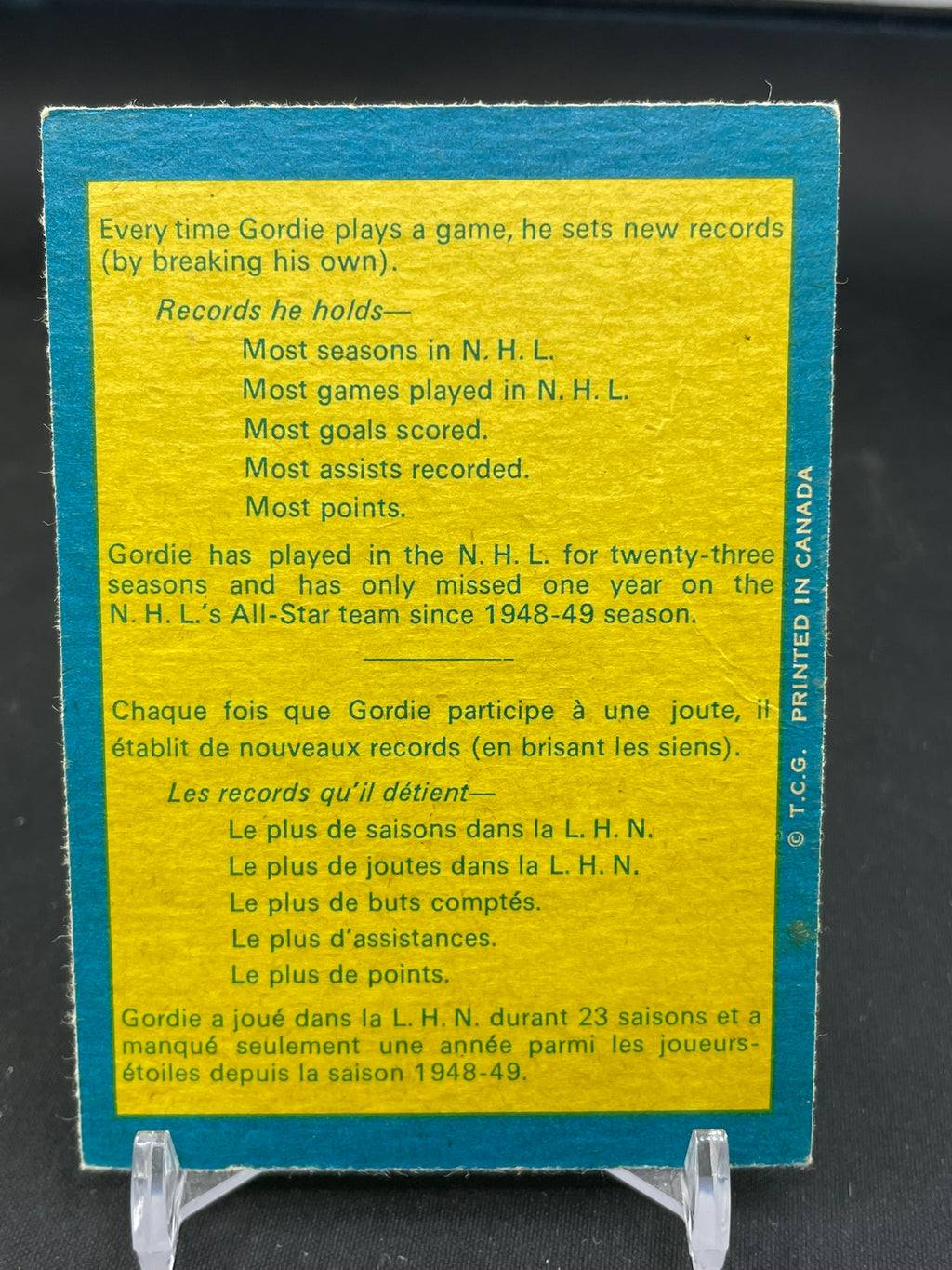 1969 O-PEE-CHEE - G. HOWE - MR. HOCKEY - NO NUMBER