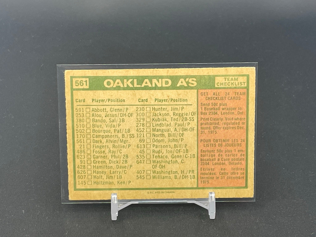 1975 O-PEE-CHEE - OAKLAND A'S TEAM CHECKLIST - #561