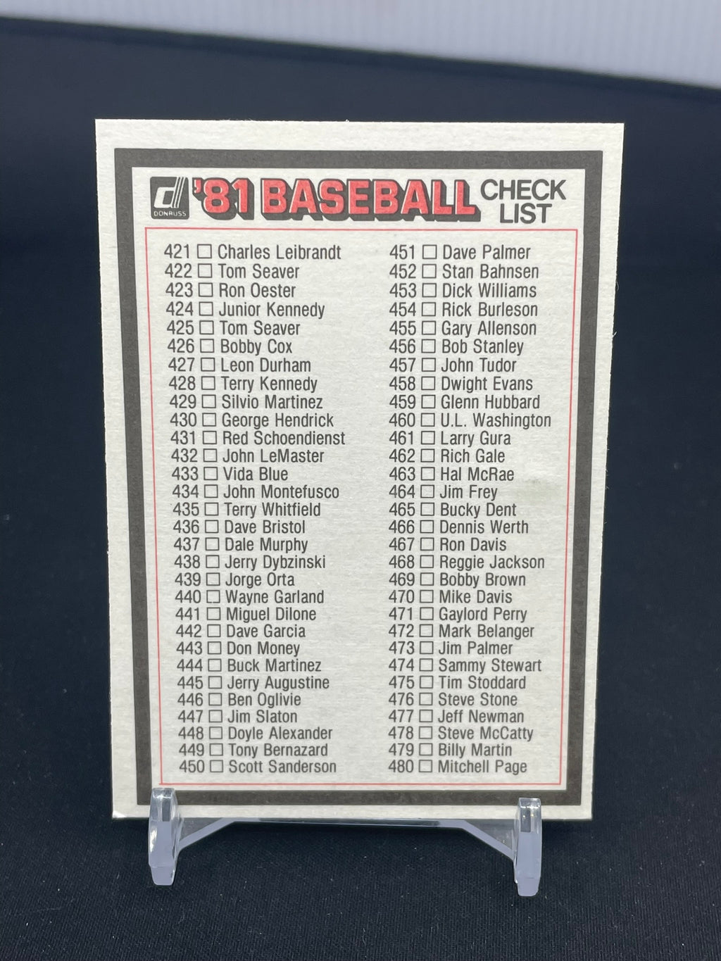 1981 DONRUSS BASEBALL - CHECKLIST - #361-480
