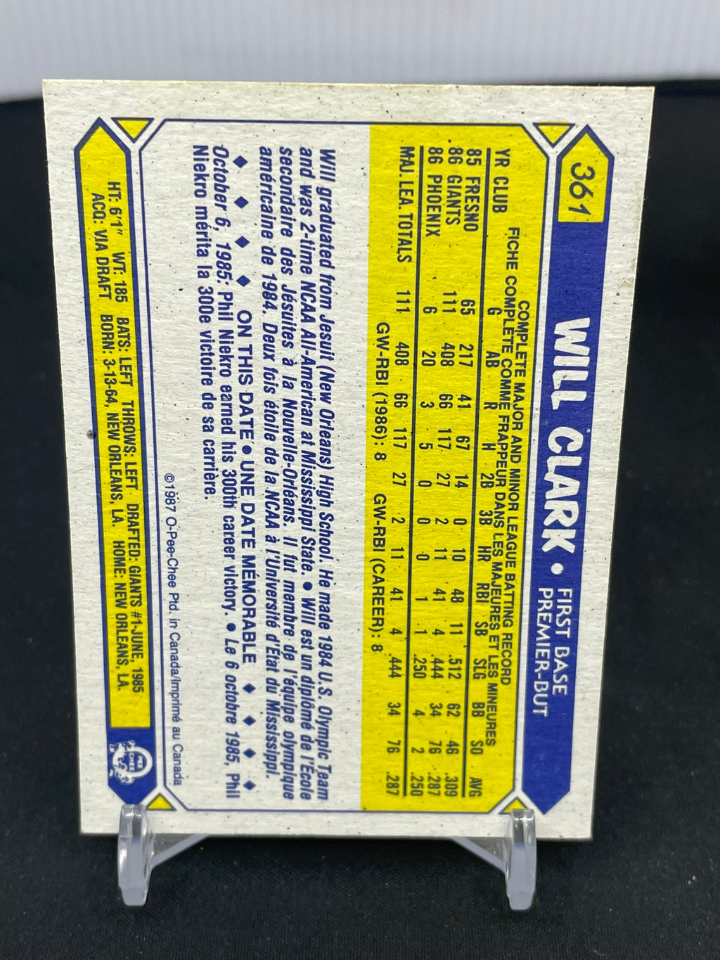 1987 O-PEE-CHEE - W. CLARK - #361 - RC